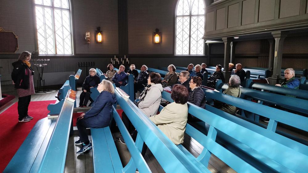 Ensin syötiin Merimestassa maittava lohikeittolounas ja sen jälkeen kierrettiin bussilla katselemassa Reposaaren nähtävyyksiä. Tarkemmin tutustuttiin Reposaaren kirkkoon (Suomen kauneimmaksi kirkoksikin kutsuttu) ja hautausmaahan, jotka molemmat ovat erikoislaatuinen pala Suomen historiaa.