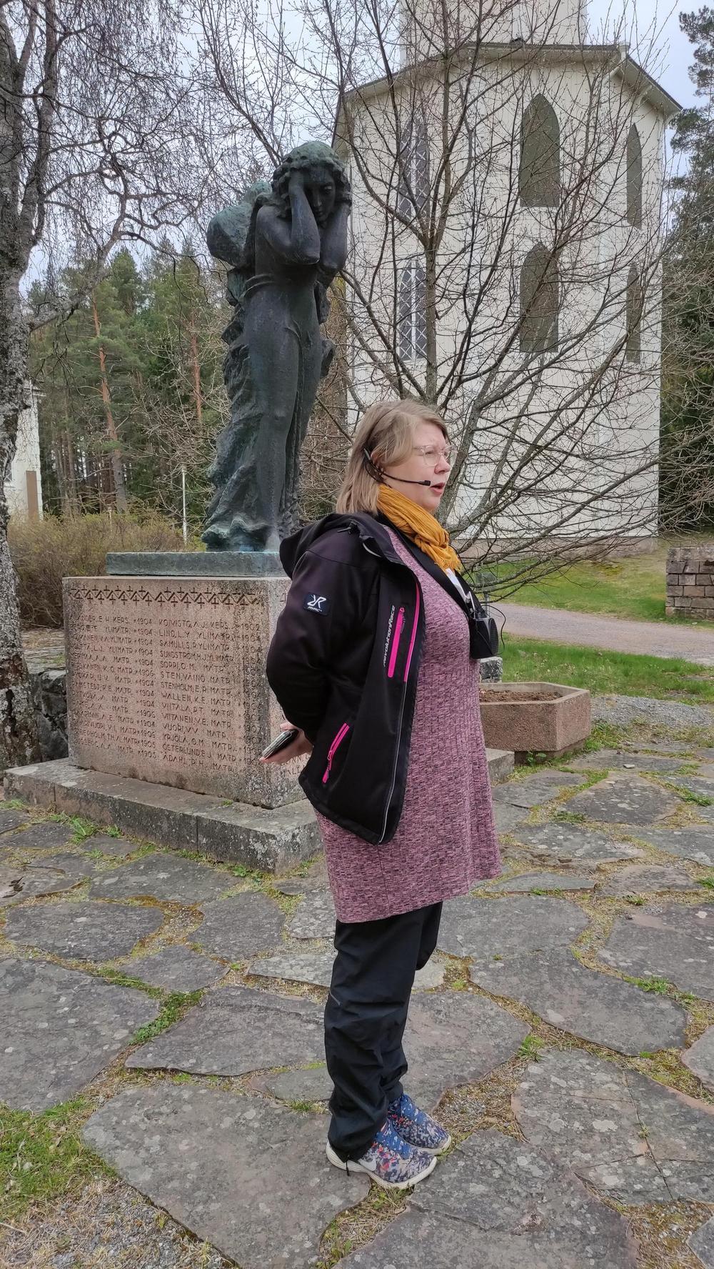 Vuonna 1925 myrskyssä Reposaaren edustalla uponneen torpedovene S2:n muistomerkillä (suunnitellut kuvanveistäjä Wäinö Aaltonen) oppaamme Satu Randen kertoi haverista, sekä kirkon ja hautausmaan historiasta.